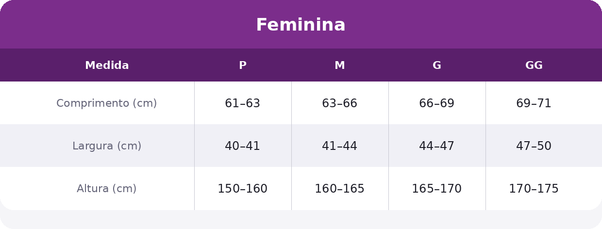 *Devido à medição manual, pode haver um erro de 1-3 cm.